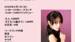 その他 【満席御礼】「マジックランチ2026」は、公式LINEにご登録いただいている皆さまへ事前にご案内したところ、ありがたいことにすぐに満席となりました。たくさんのお問い合わせ・ご関心をいただき、心より感謝申し上げます。次回開催の際も、まずは公式LINEにてご案内いたします。