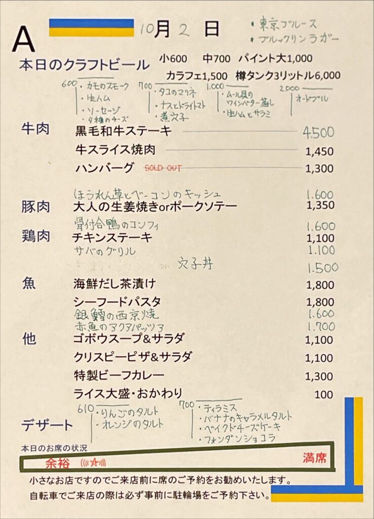 夜のメニュー