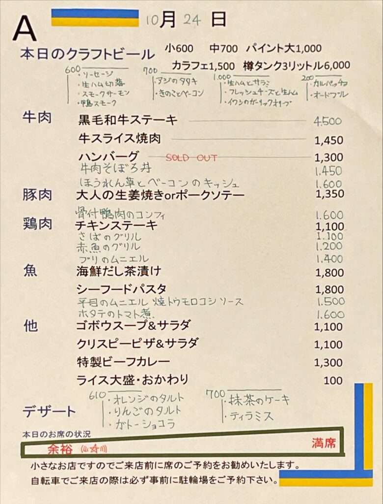 夜のメニュー