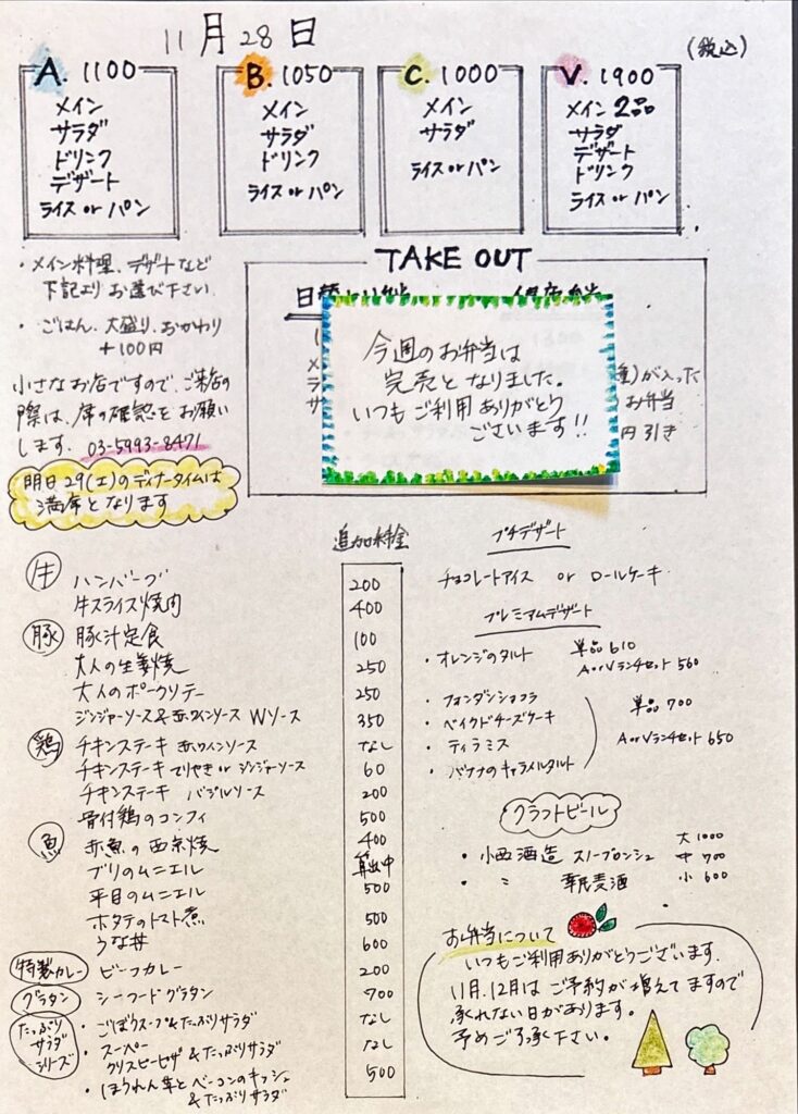 ランチメニューです。