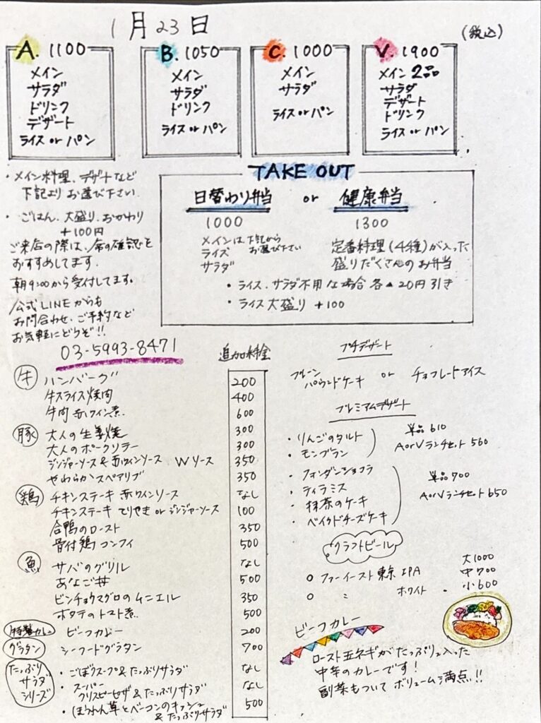 ランチメニューです。