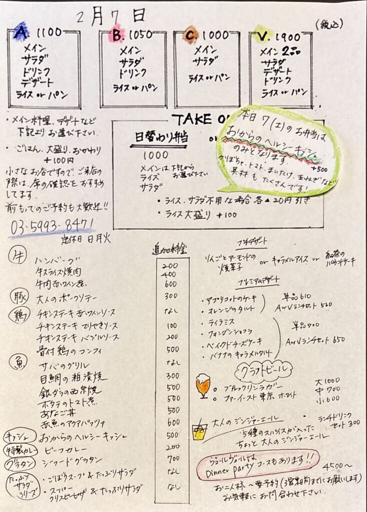 ランチメニューです。