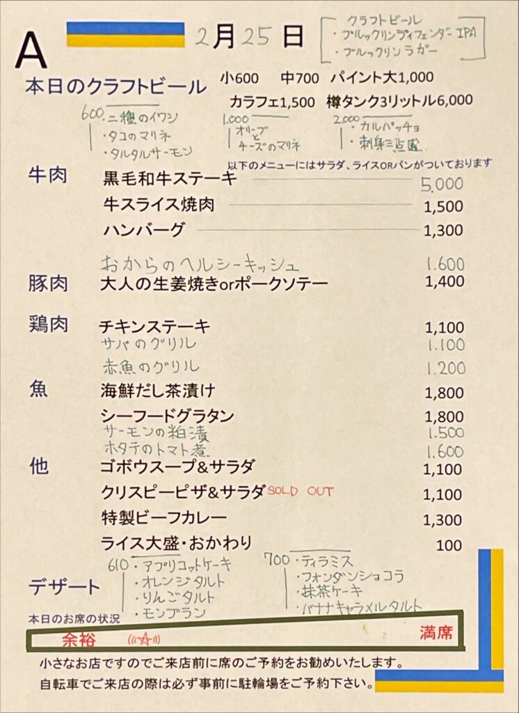 夜のメニュー