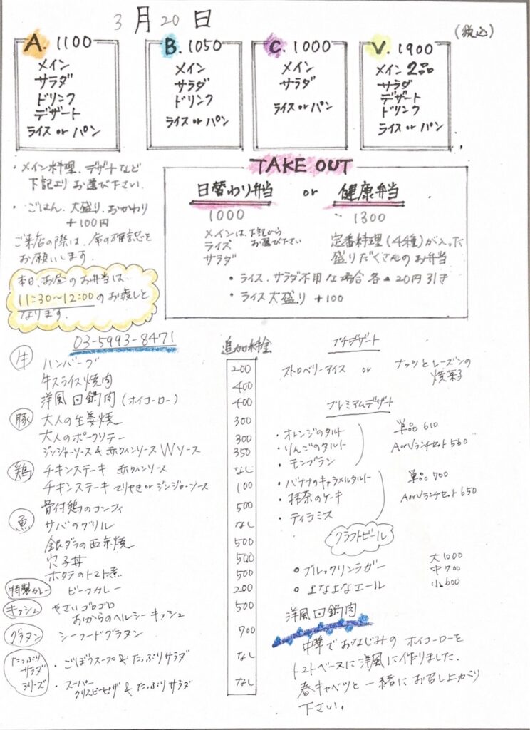 ランチメニューです。