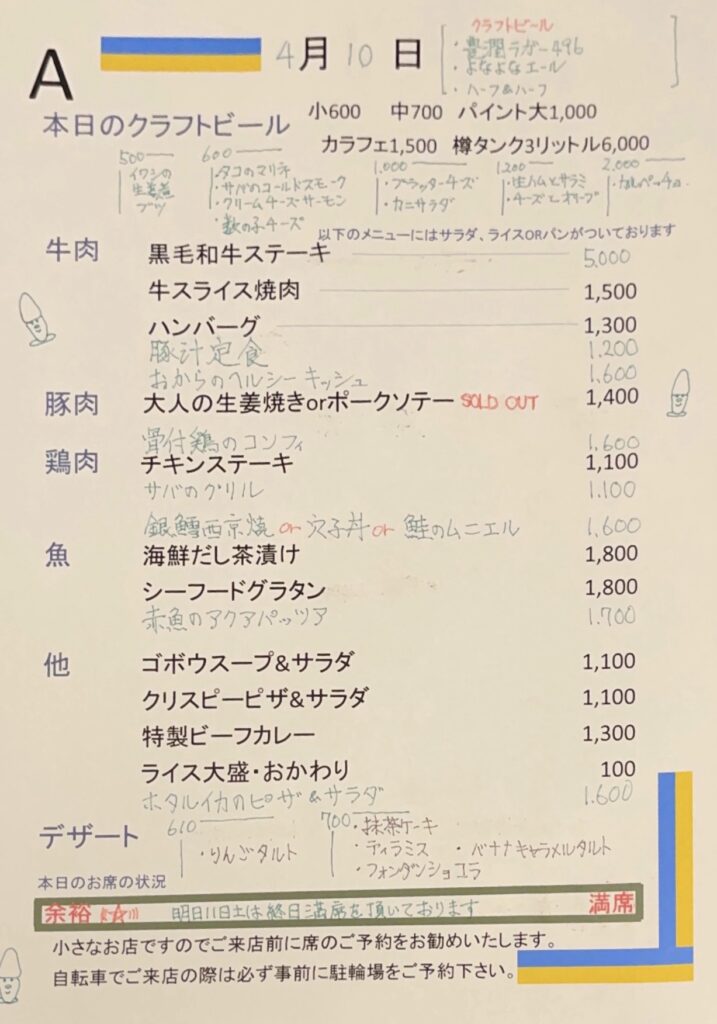 夜のメニュー