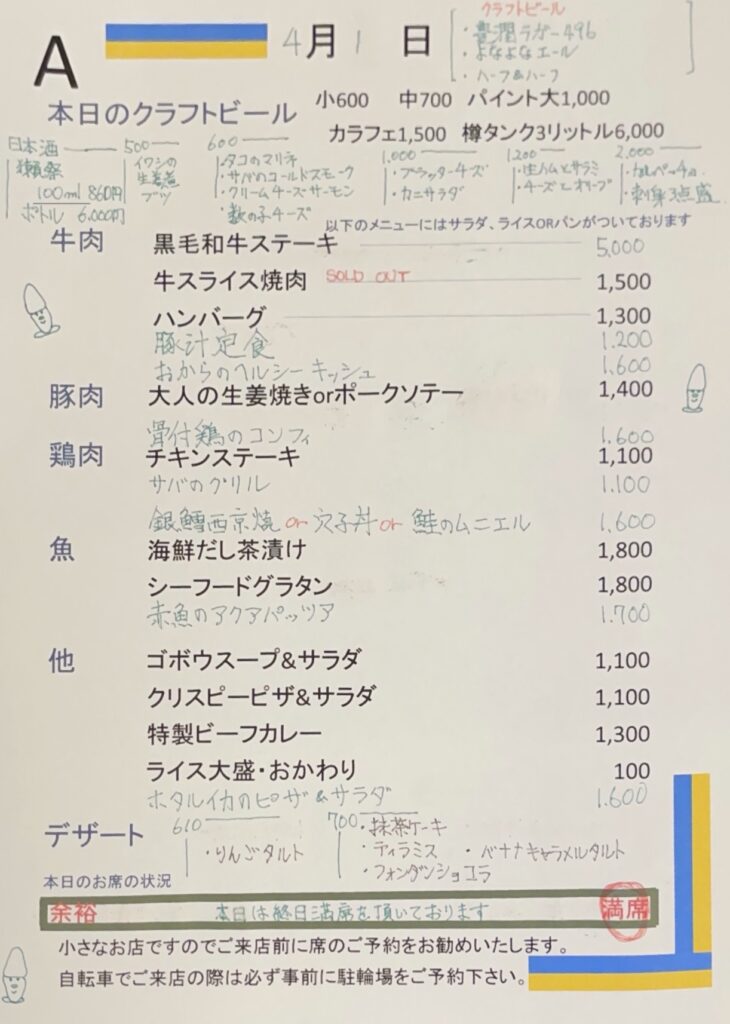 夜のメニュー