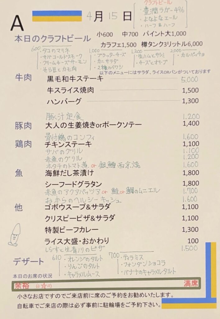 夜のメニュー