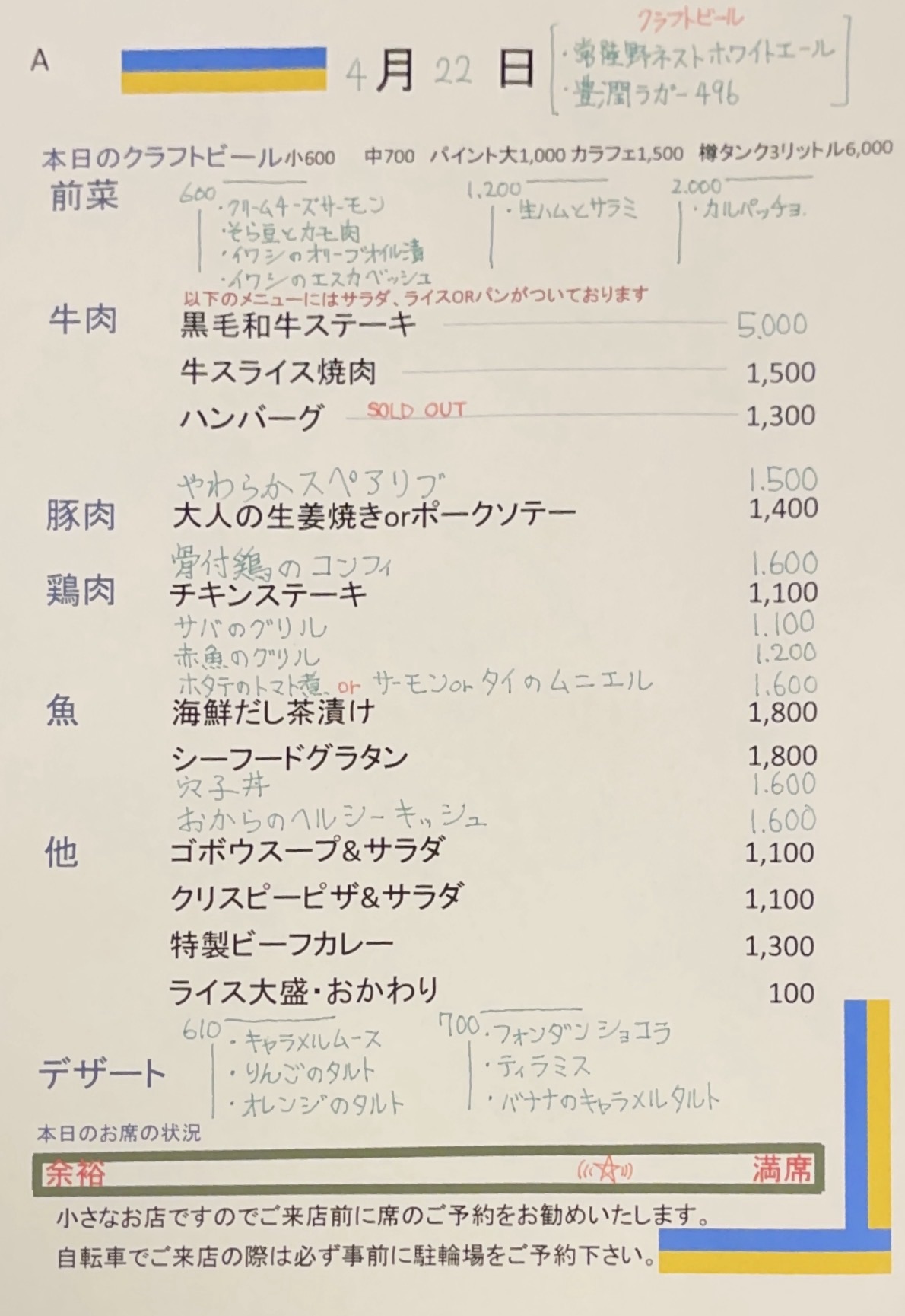 夜のメニュー